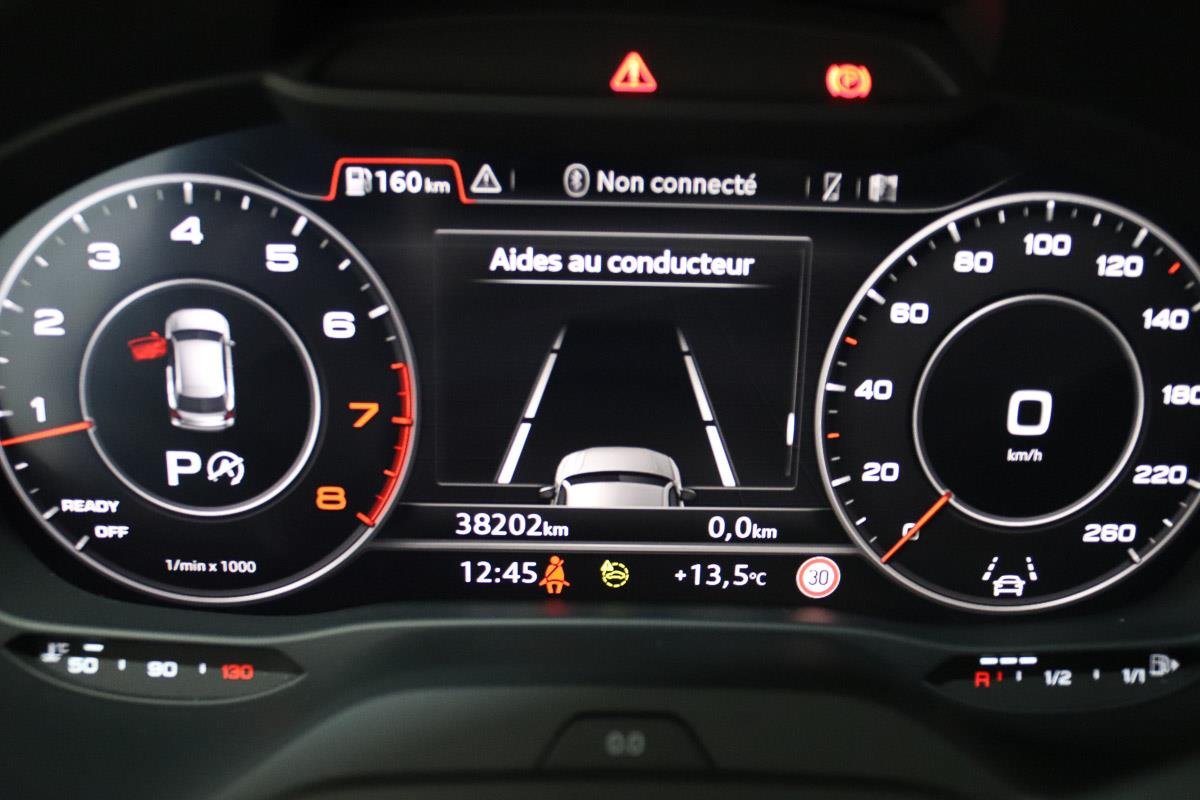 clim auto bi-zone, tableau de bord virtual-cockptit, coffre électrique, feux full-led, capteur de pluie, régulateur/limiteur de vitesse adaptatif, lecture des panneaux des signalisations, freinage d'urgence actif, radar de recul av & ar +caméra, rétros électriques rabattables, détection des piètons, détection d'angle mort, volant cuir multifonction, accoudoir av, radio média tactile, interface usb/bluetooth, duplication smartphone car-play/andoid-auto, gps europe, services connectés, pack hifi audi sound-systeme, sellerie sport full cuir, sièges av chauffants & réglables en hauteur, réglage lombaires électriques, banquette ar 2/3 1/3, isofix, vitres ar sur-teintées, coffre double fond, toit ouvrant panoramique, abs/esp, afu tpms, jantes alu diamantées bi-ton "18", peinture gris daytona, feux ar led, shadow line, pack s-line...