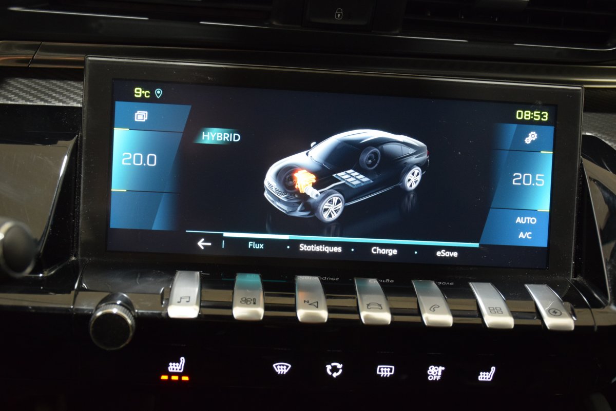clim auto bi-zone, compteur digital 3d, clefs mains libres, phares auto, capteur de pluie, rétros électriques rabattables, régulateur de vitesse adaptatif, radar de recul av & ar +caméra, alerte de sortie de voie, lecture des panneaux de signalistions, freinage d'urgence actif, détection d'angle mort, volant cuir multifonction, accoudoir av, radio média tactile, interface usb-bluetooth, gps europe, duplication smartphone car-play / android-auto, chargeur induction, commande vocale, sellerie full cuir, sièges chauffants, réglage lombaires électriques, isofix, banquette ar 2/3 1/3, prise ar 12 volt, vitres ar sur-teintées, trappe à skis, abs-esp, tpms, afu, sélction du mode de conduite hybrid/auto/électrique, chargeur domestique 220 volt, chargeur embarqué 7.4kw, jantes alu diamantées bi-ton "17", peinture métal gris amazonite, feux ar led 3d, finition extérieur chrome...